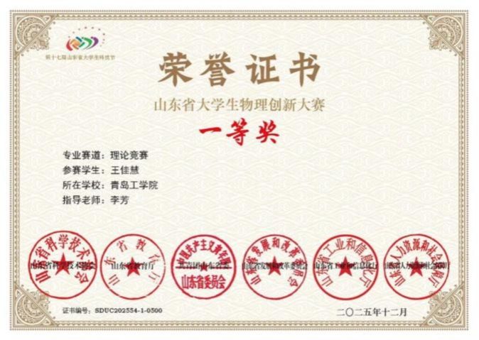 - 青岛工学院学子在2025年全国大学生物理实验竞赛(创新)中斩获三等奖12-16